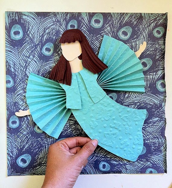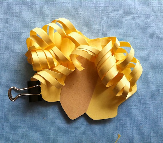 הוספתי גם את הפנים מנייר בצבע גוף והמשכתי להדביק את התלתלים