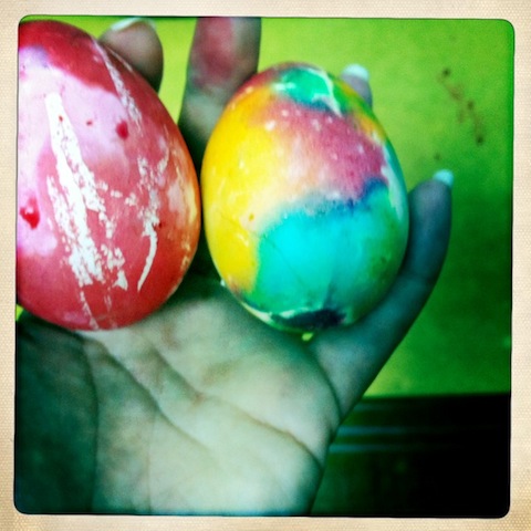 שכנתי הבולגריה, נטשה, נתנה לי שתי ביצי פסחא שהיא קישטה במו ידיה.